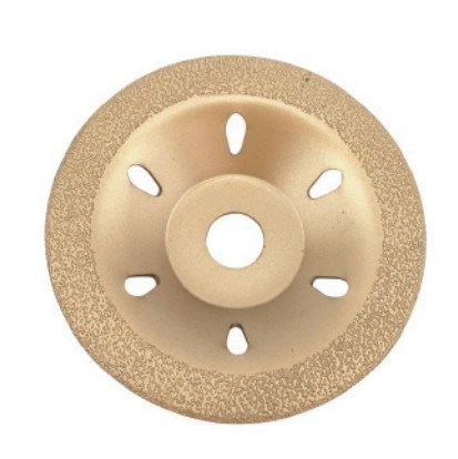 Высоко износостойкое алмазное шлифовальное колесо для каменного материала изготавливается из сварного или холодного прессования алмазного лезвия на металлическом матрице;бриллиантовое лезвие изготовлено из искусственного промышленного бриллианта и другого металлического порошка, холодно- и горячо-прессованные, сцинтерованные, а затем сварные на металлической матрице в форме чаши.